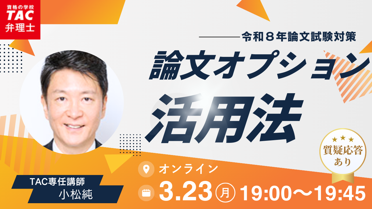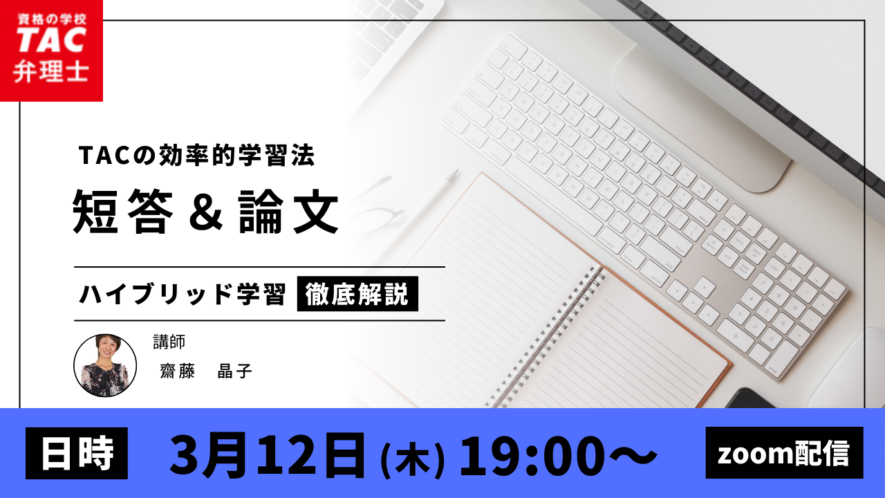 3/12(木) | オンライン | セミナー | TACの効率的学習法 短答・論文ハイブリッド学習 |