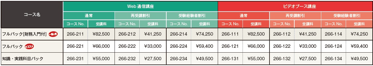 | 対象コース | 2026年10月試験目標 ・フルパック[財務入門付] ・フルパック ・知識・実践科目パック |